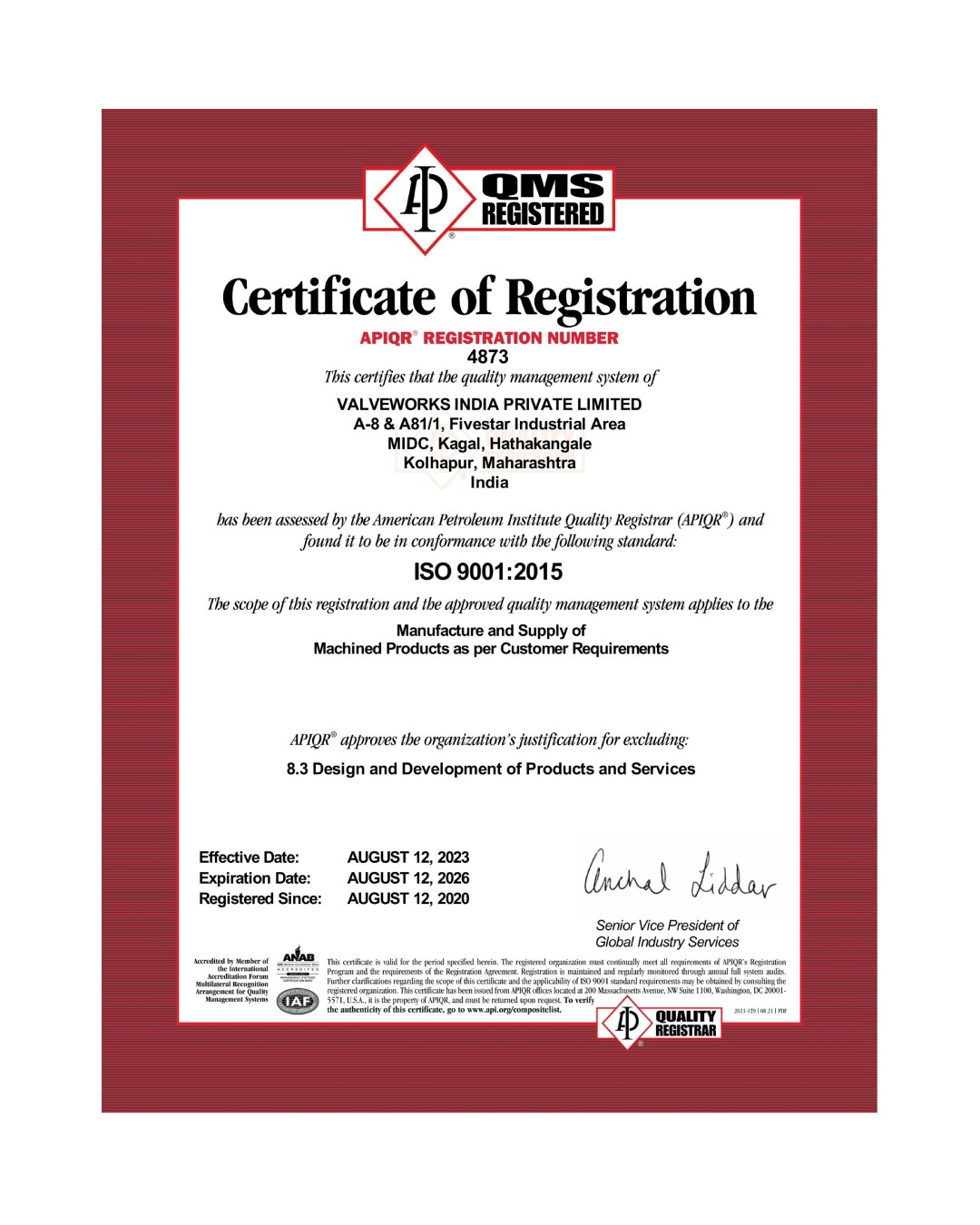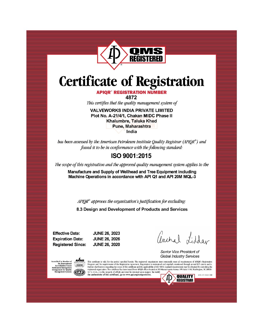 Certifications API 6A (PLANT II) PED 2014 68 EU (PLANT III) API Q1 10TH EDITION (PLANT I) API Q1 10TH EDITION (PLANT II) ISO 9001 - 2015 (PLANT I) ISO 9001 - 2015 (PLANT II) ISO 9001 - 2015 (PLANT III) ISO 14001 - 2015 (PLANT I) ISO 14001 - 2015 (PLANT II) ISO 14001 - 2015 (PLANT III) ISO 45001 - 2018 (PLANT I) ISO 45001 - 2018 (PLANT II) ISO 45001 - 2018 (PLANT III) ISO 45001:2015 (Plant I) ISO 45001:2015 (Plant II) ISO 45001:2015 (Plant III) ISO 45001:2018 (Plant I) ISO 45001:2018 (Plant II) ISO 45001:2018 (Plant III) API 6A (Plant II) ISO 9001:2015 (Plant I) ISO 9001:2015 (Plant II) ISO 9001:2015 (Plant I) ISO 9001:2015 (Plant II) ISO 9001:2015 (Plant III) API Q1 9th Edition (Plant I) API Q1 9th Edition (Plant II) UNIT-II API Q1-4109